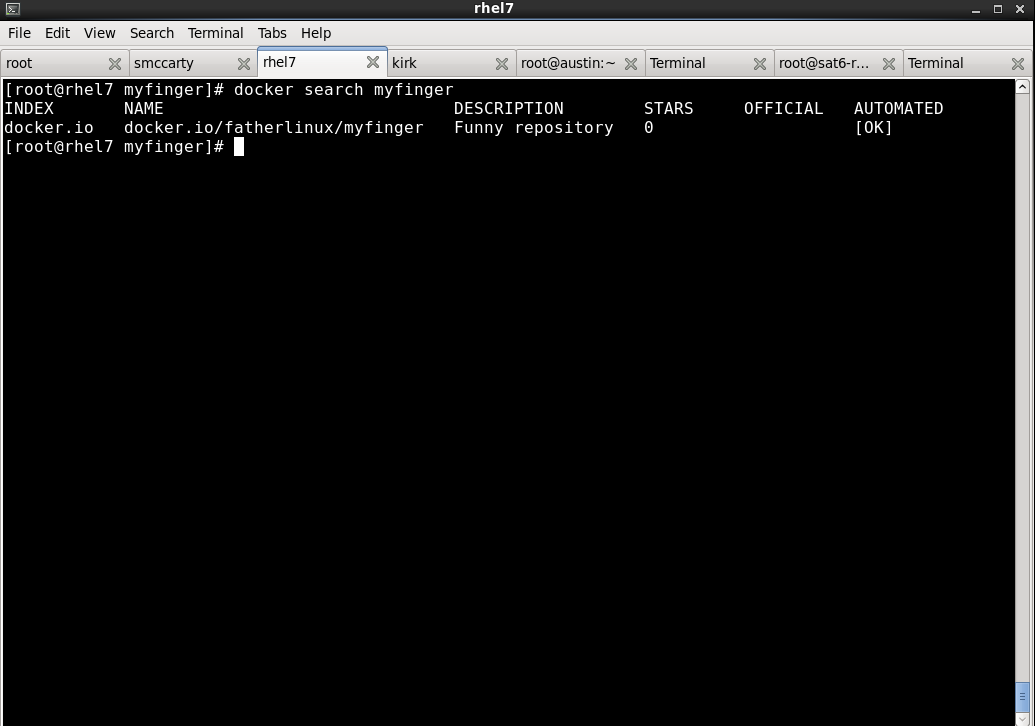 So, what happened? Well, if you ran it, you are now reading the rest of this article in a terminal, with a text based browser called Links. Why is this cool? Because, that is how easy Docker makes it to do certain things. In fact, I built this image by simply committing a Dockerfile to https://github.com/fatherlinux/myfinger and triggering a DockerHub automatic build. Strangely, nobody else in the entire world had a repository called myfinger, and I have the screenshot to prove it.